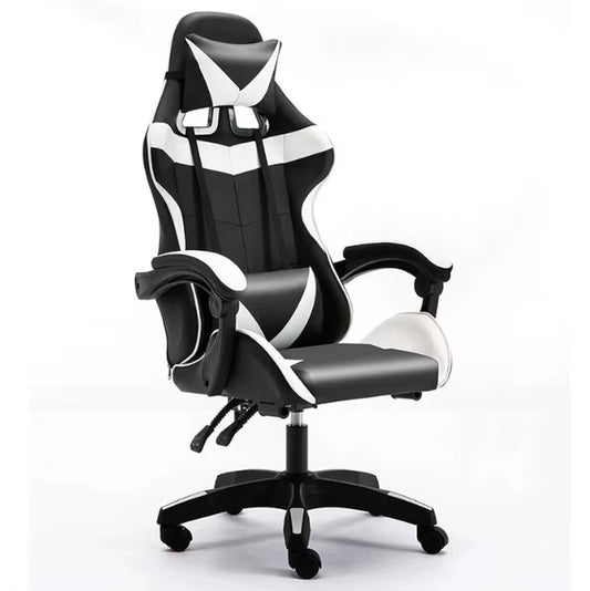 Gaming Chair, Video Game Chair with Footrest and Massage Lumbar Support, Ergonomic Computer Chair Height Adjustable with Swivel Seat and Headrest (White)